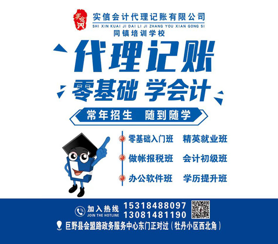實信會計有限公司作為一家專業的巨野代理記賬公司,主營業務有:代理記賬、菏澤園區代開、巨野公司注冊、菏澤會計培訓等業務。近幾年來公司主要致力于為小型微利企業提供公司注冊、會計培訓、代理記賬等服務。